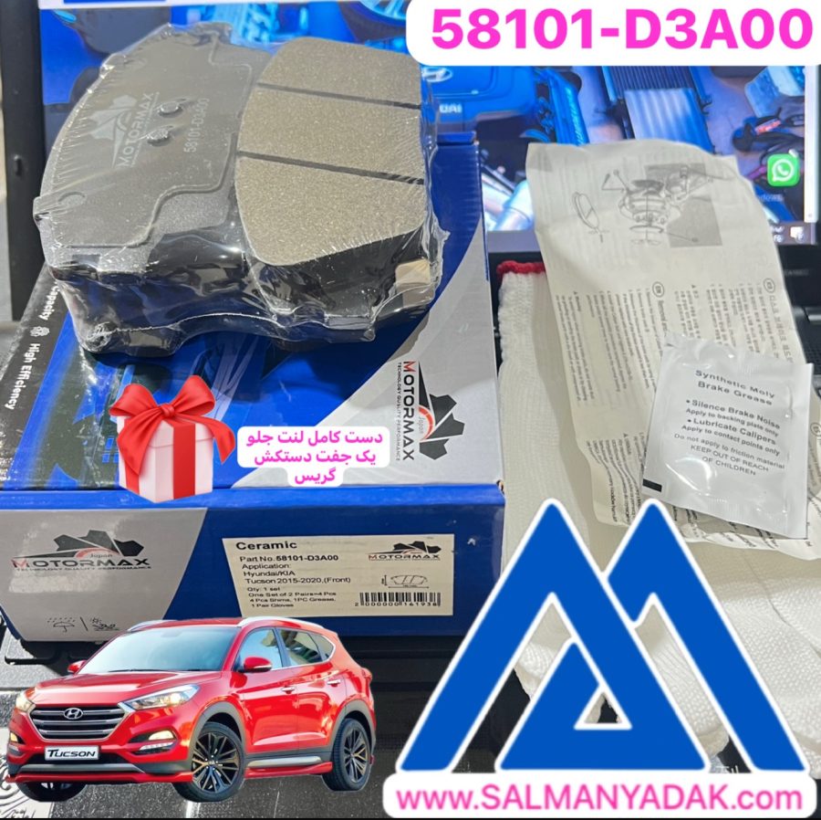 لنت ترمز جلو هیوندا توسان 58101D3A00 TL برند موتورمکس ژاپن همراه با دستکش و گریس